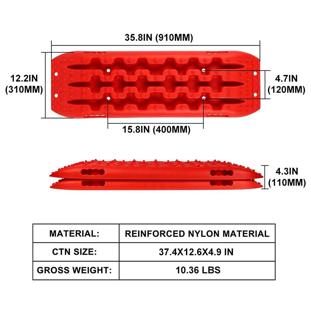 - Raised tracks help prevent vehicle tires from spinning on snow, sand, mud or ice