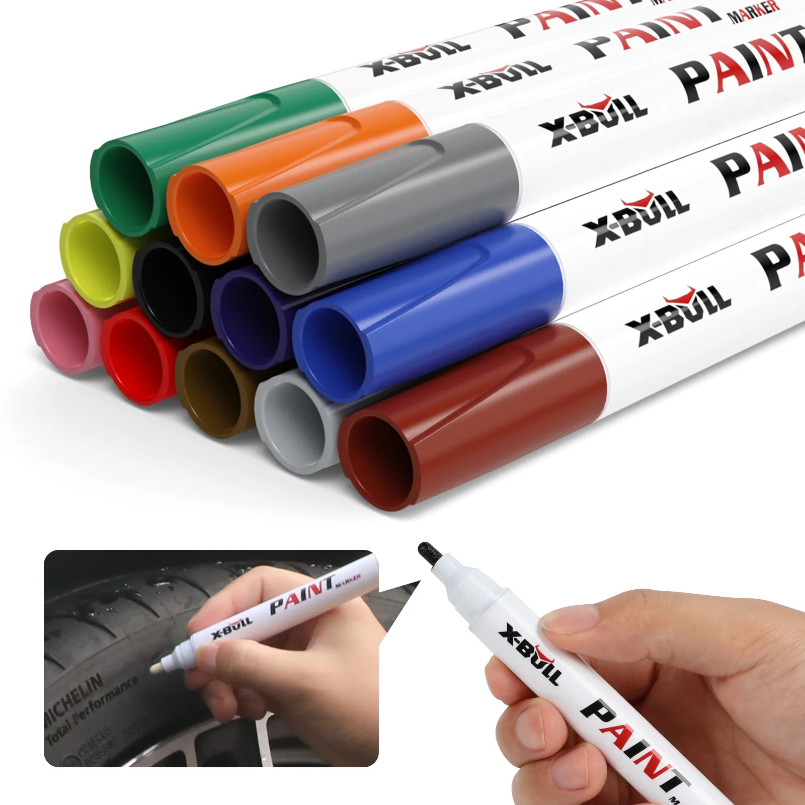X-BULL Waterproof Permanent Paint Marker Pen Car Tyre Tire Rubber Metal 12PCS